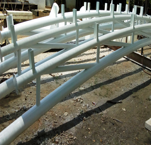 ALCANCES: Suministro, fabricación y montaje de estructura metálica para cubierta en tubo redondo de 6″, 4″ y 2 1/2″ pulgadas.