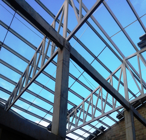 ALCANCES: Fabricación y montaje de estructura metálica en perfil PHR encajonado para cubierta tipo canaleta 90 calibre 24. Área de intervención: 1.800 mts 2.
