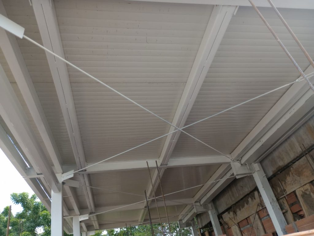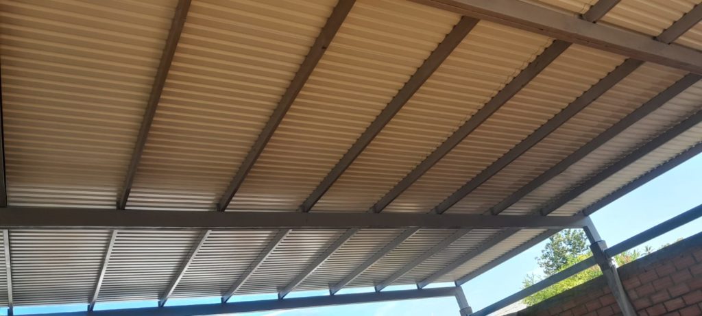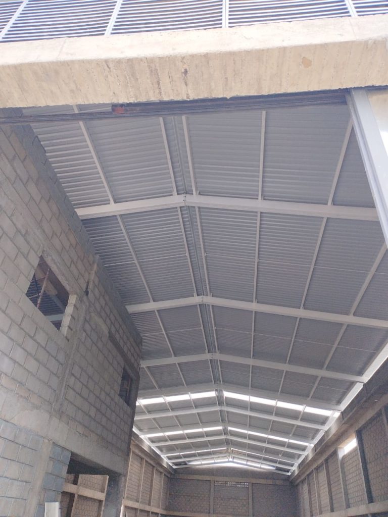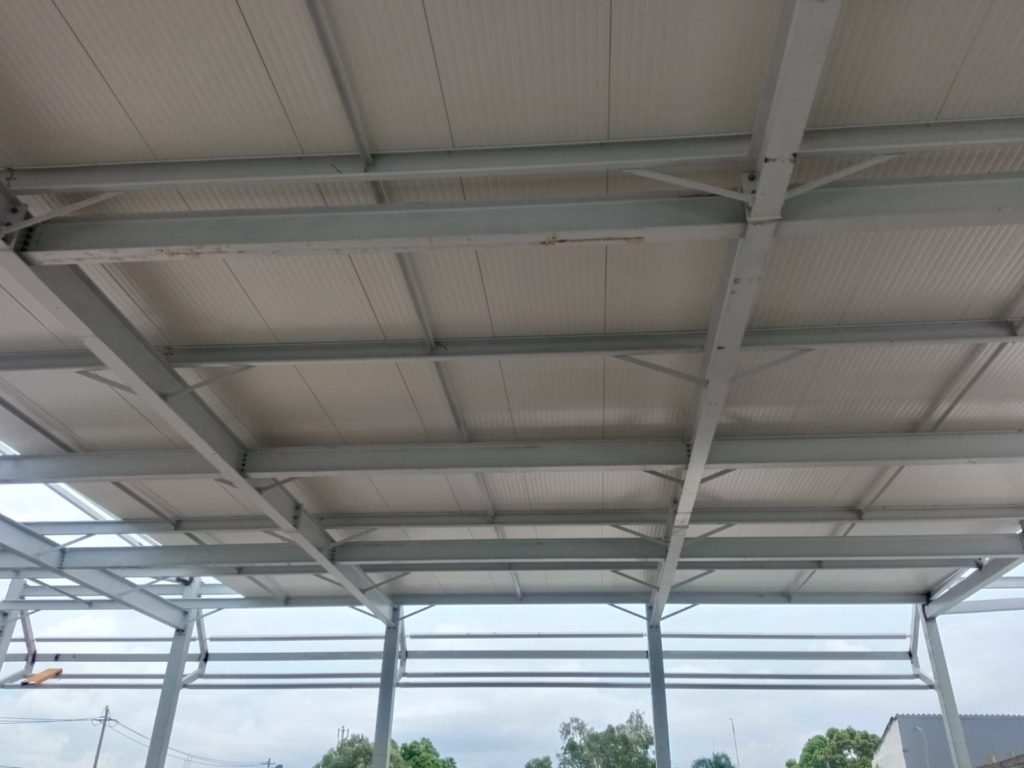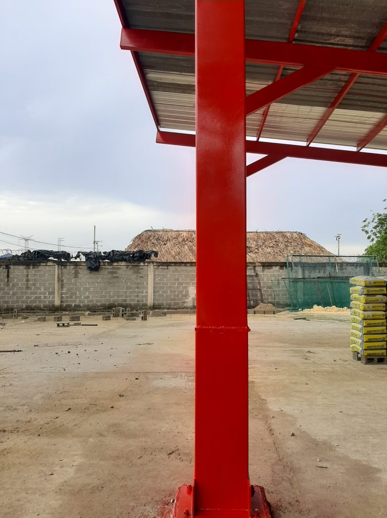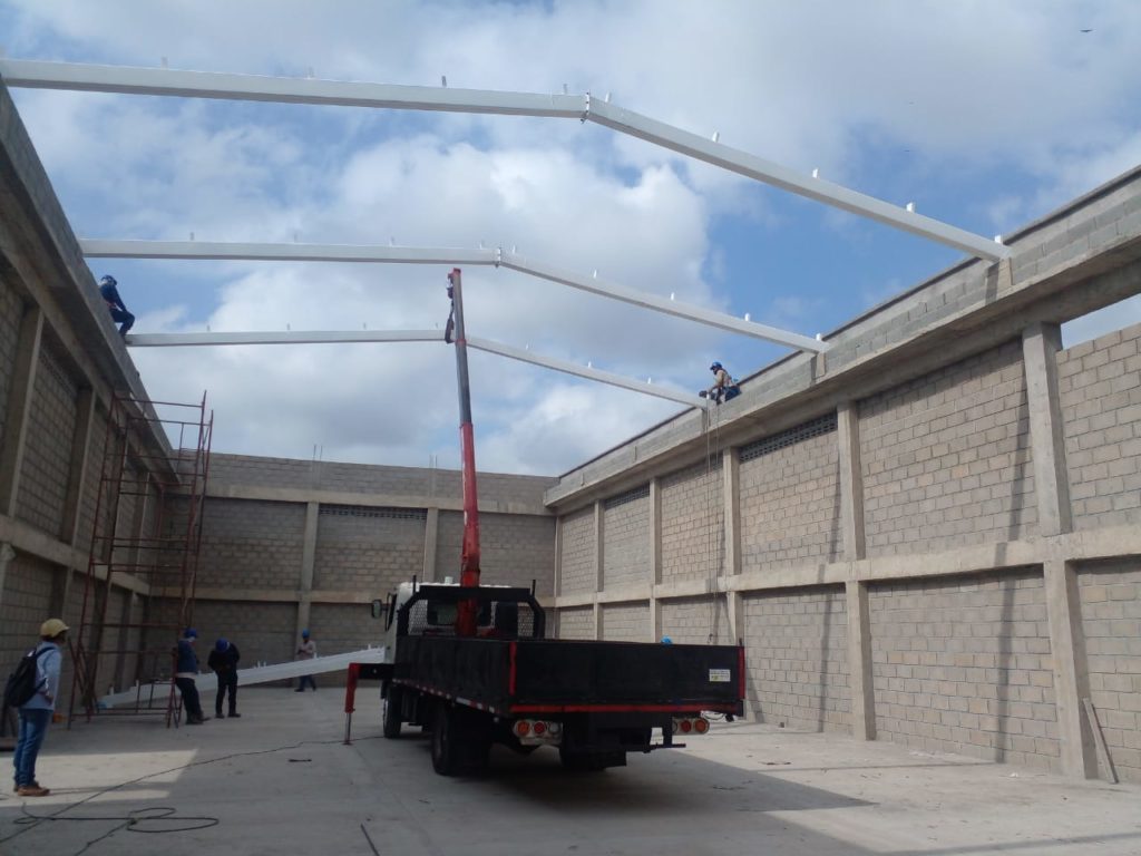 ALCANCES: Fabricación y montaje de una estructura metálica para cubierta de 13 m de ancho x 15 m de longitud en perfil PHR encajonado, además de la instalación de cubierta.