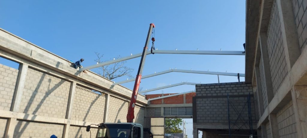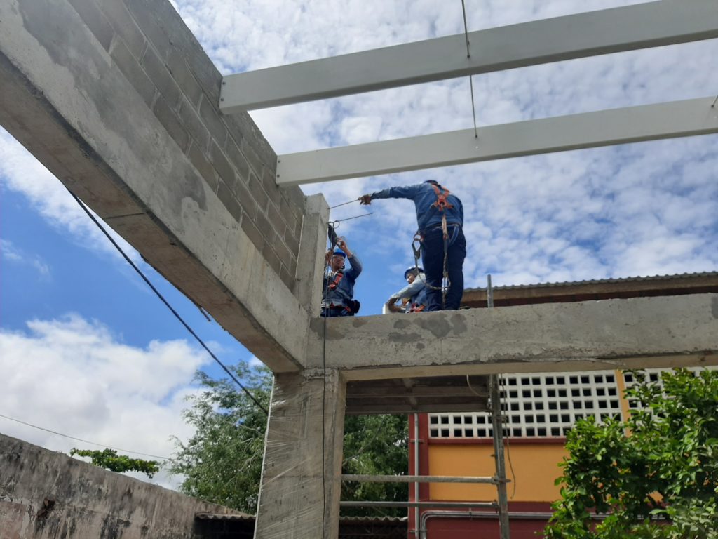 ALCANCES: Suministro, fabricación e instalación de estructura metálica en perfil PHR encajonado 305 para cubiertas de aulas escolares.