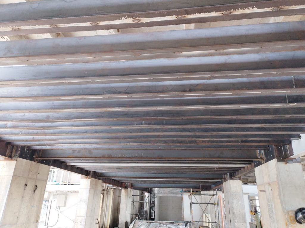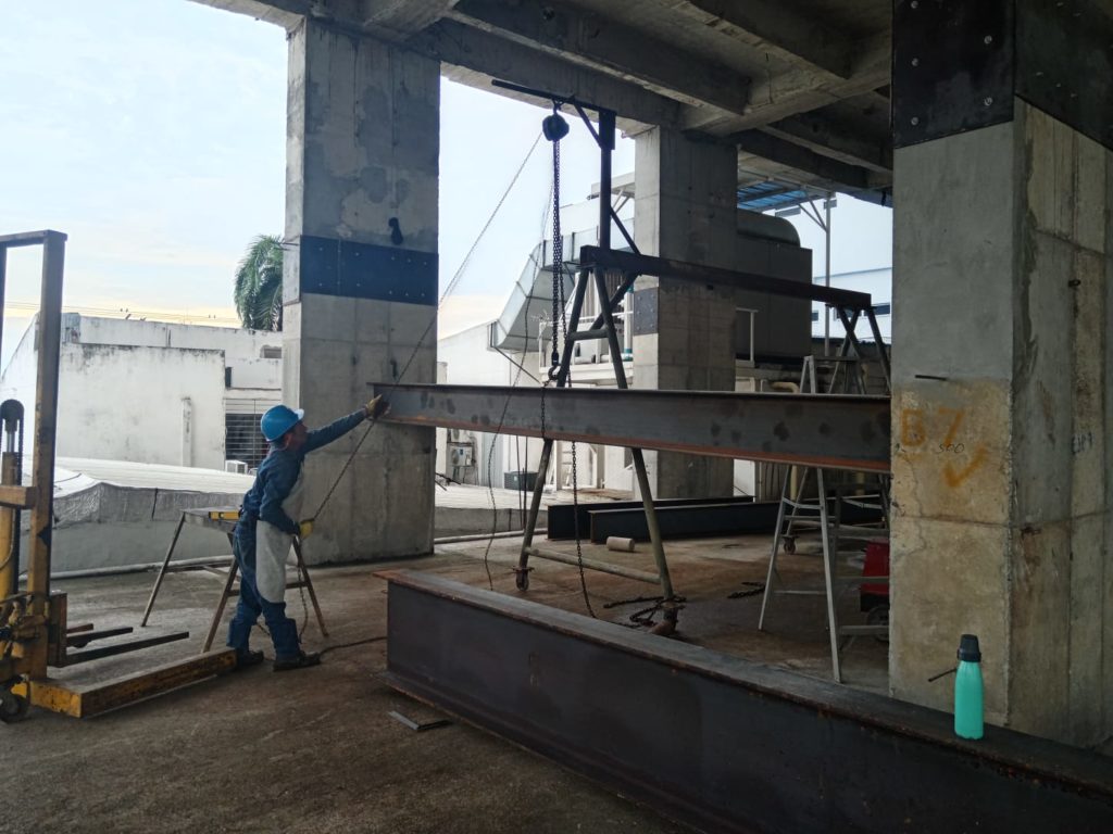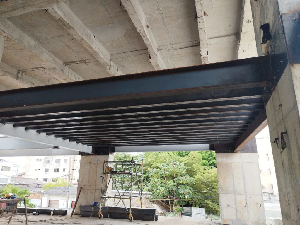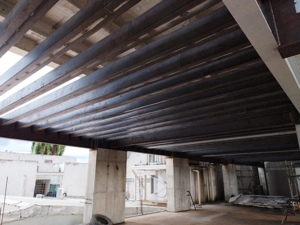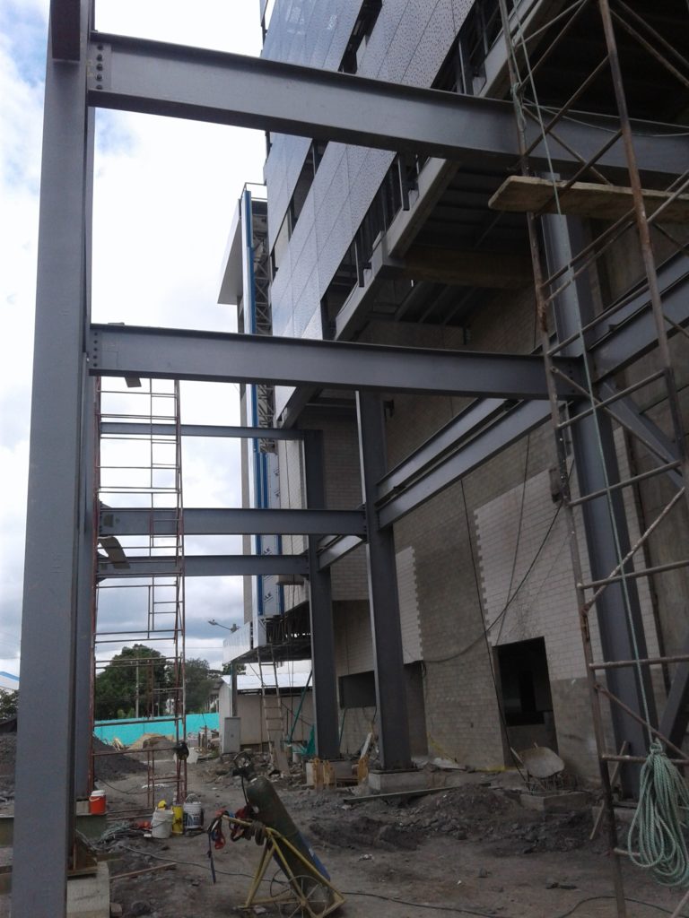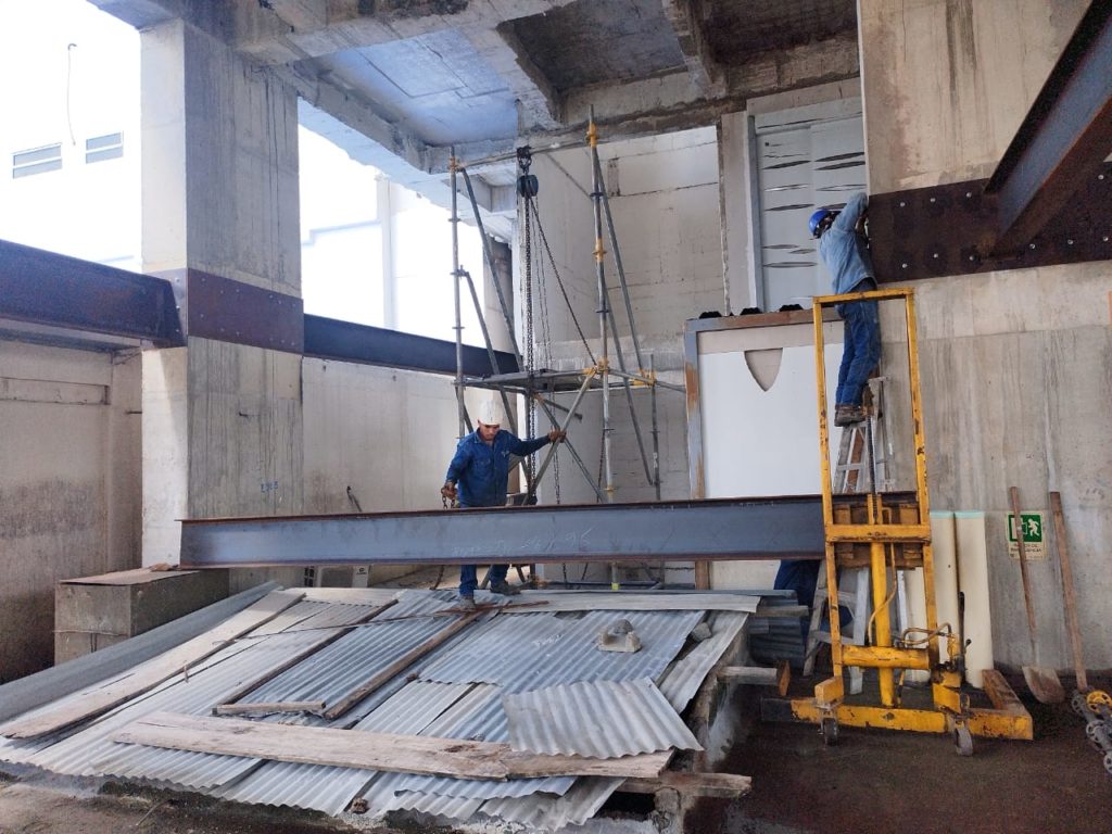 ALCANCES: Este proyecto comprendió el suministro de mano de obra, equipos y herramientas para la fabricación de la estructura y montaje de 36 toneladas de viga Alma Llena que comprendió el proyecto de Mezanine para la entrada a urgencias de dicha clínica.