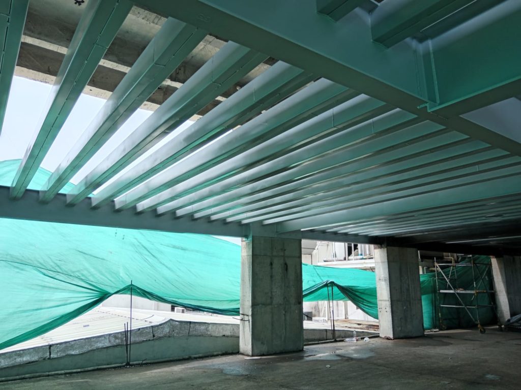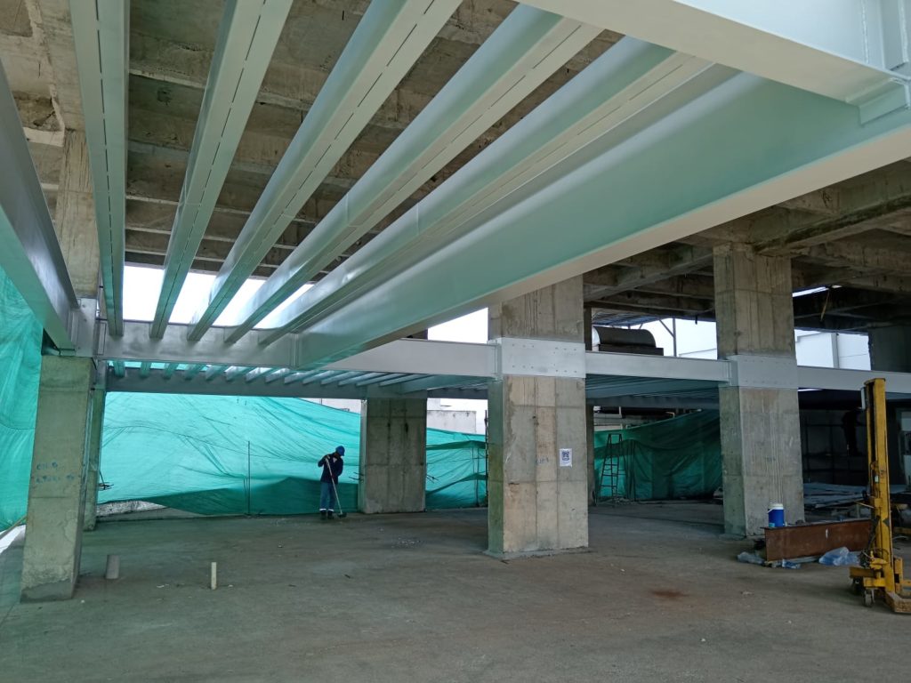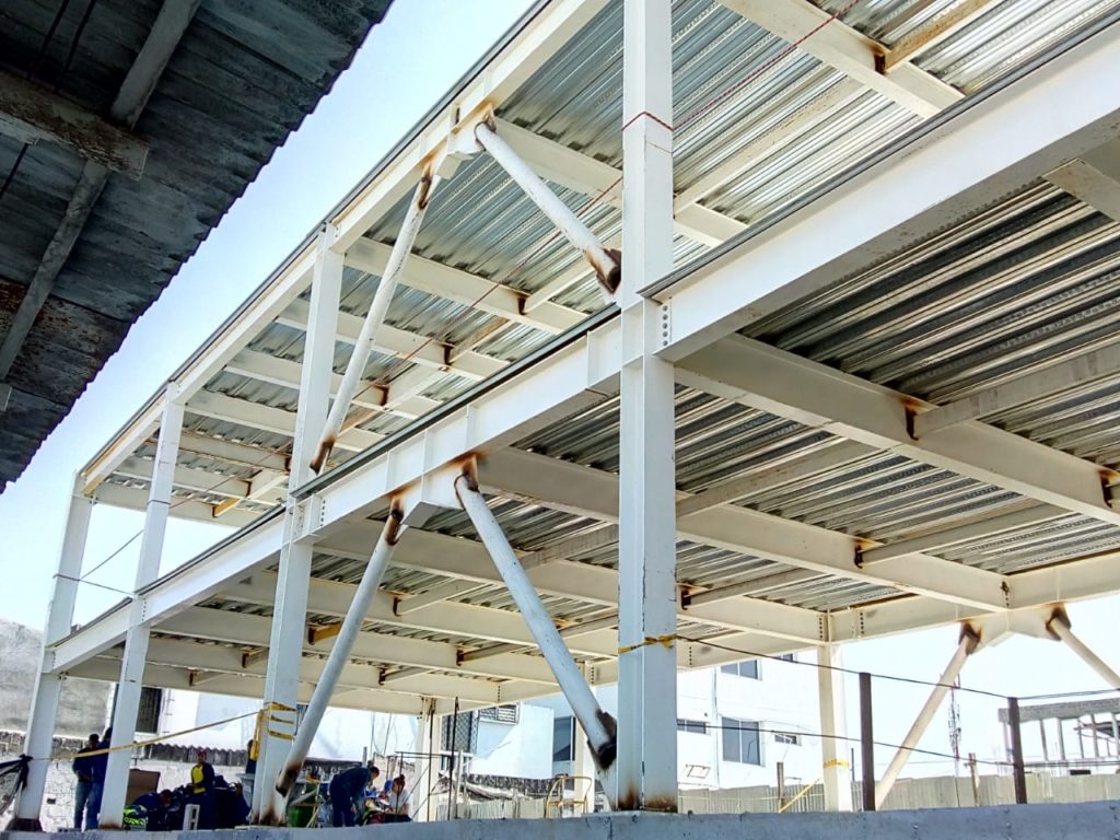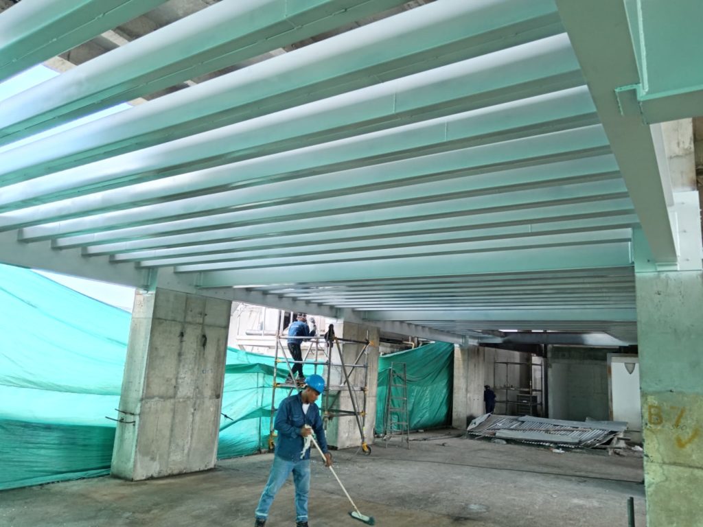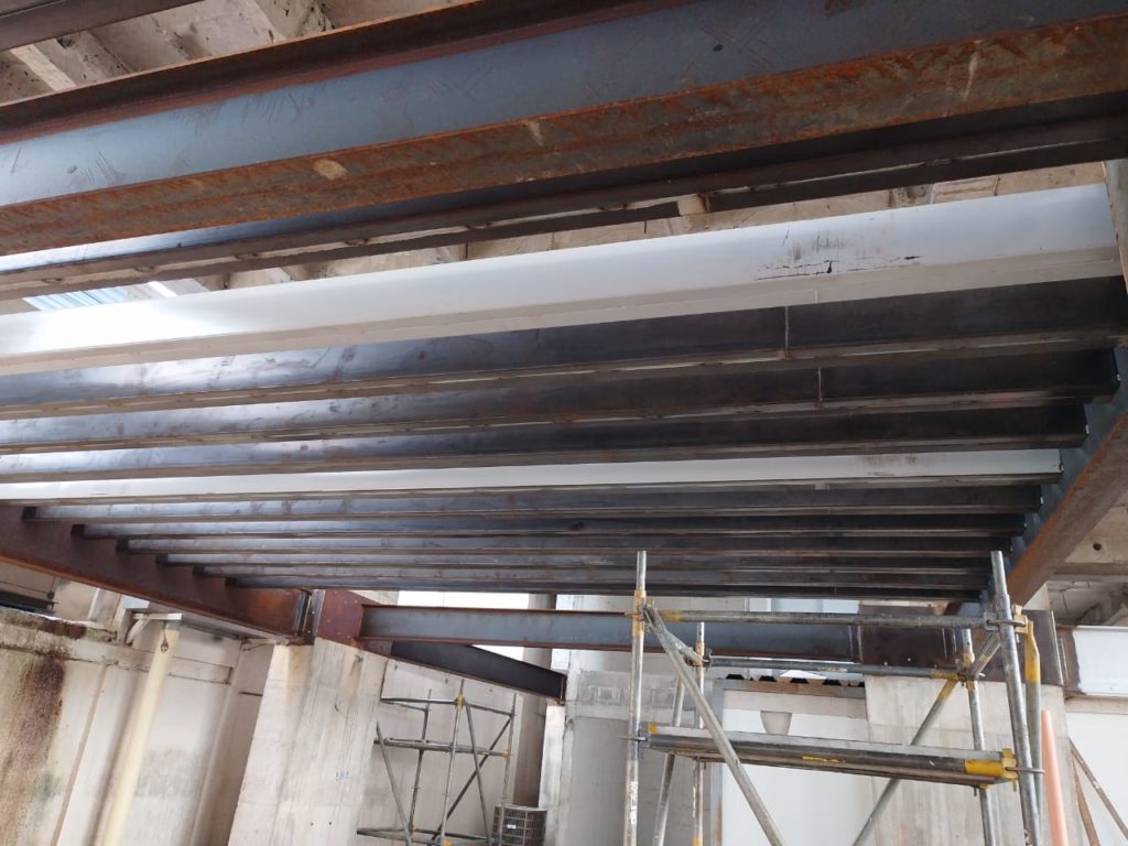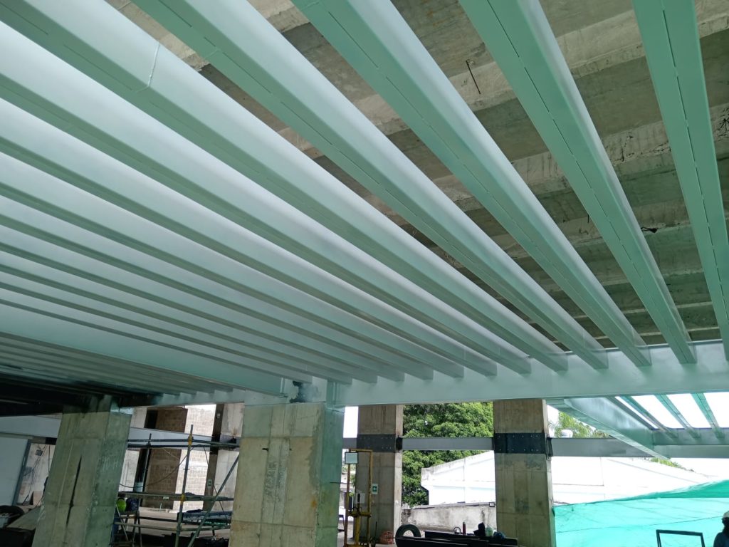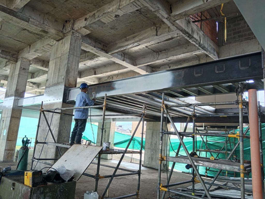 ALCANCES: Fabricación e instalación de una estructura metálica en perfileria IPE, PHR. Con aplicacion de pintura intumescente y acabado en poliuretano cumpliendo con la norma ISO 12944.