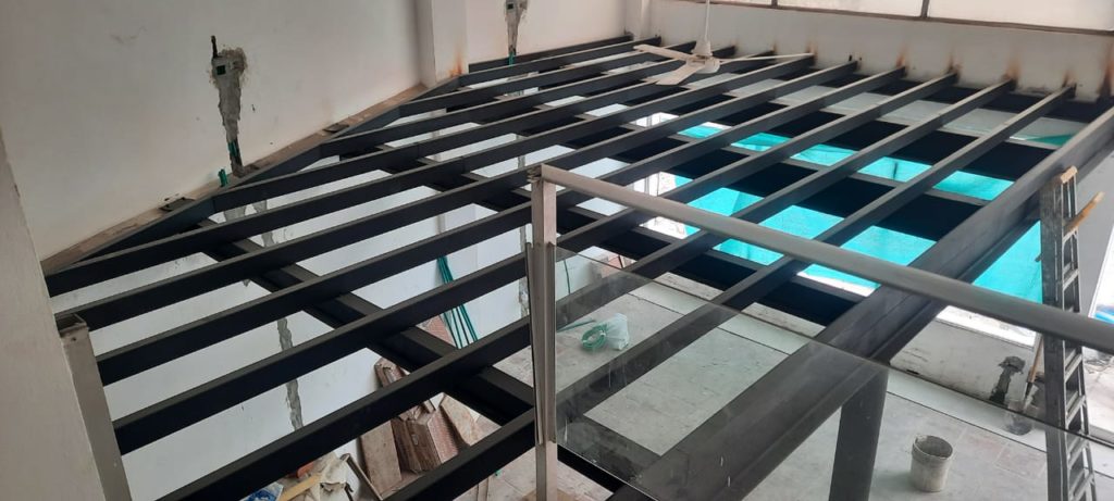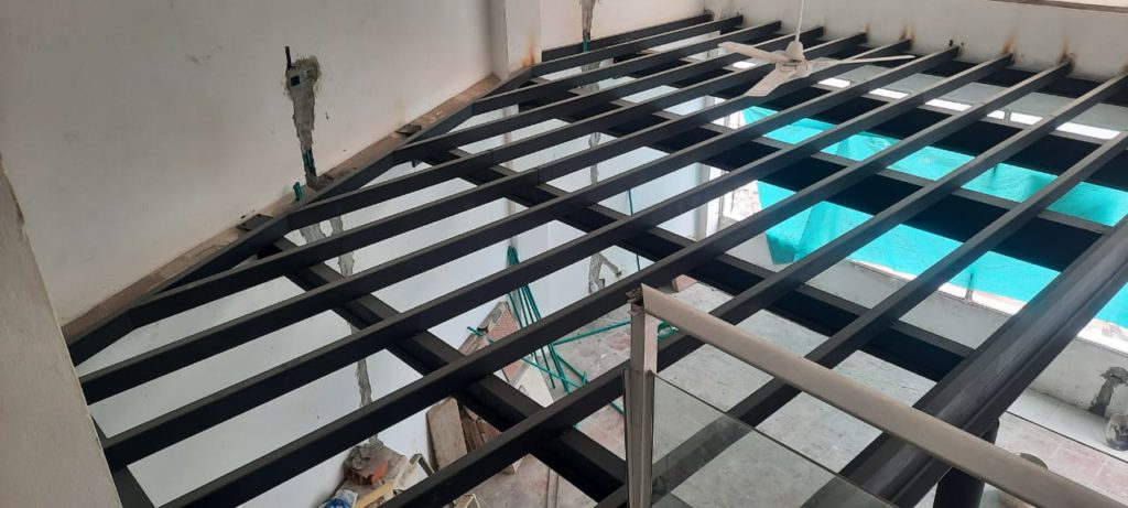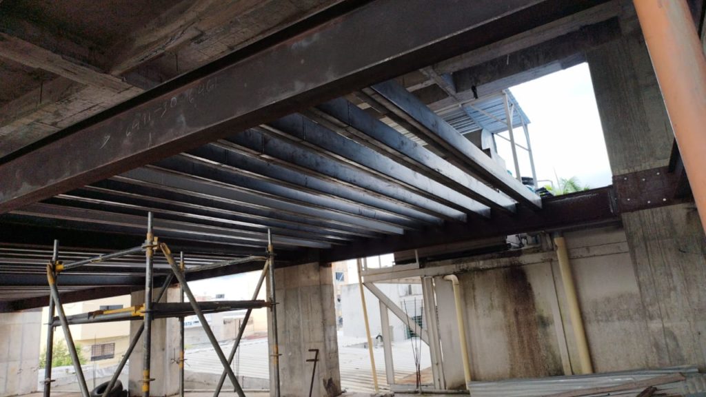 ALCANCES: Este proyecto comprendió el suministro de mano de obra, equipos y herramientas para la fabricación de la estructura y montaje de 1,5 toneladas de vigas y perfiles que comprendió el proyecto de Mezanine para dicho local comercial de una planta.